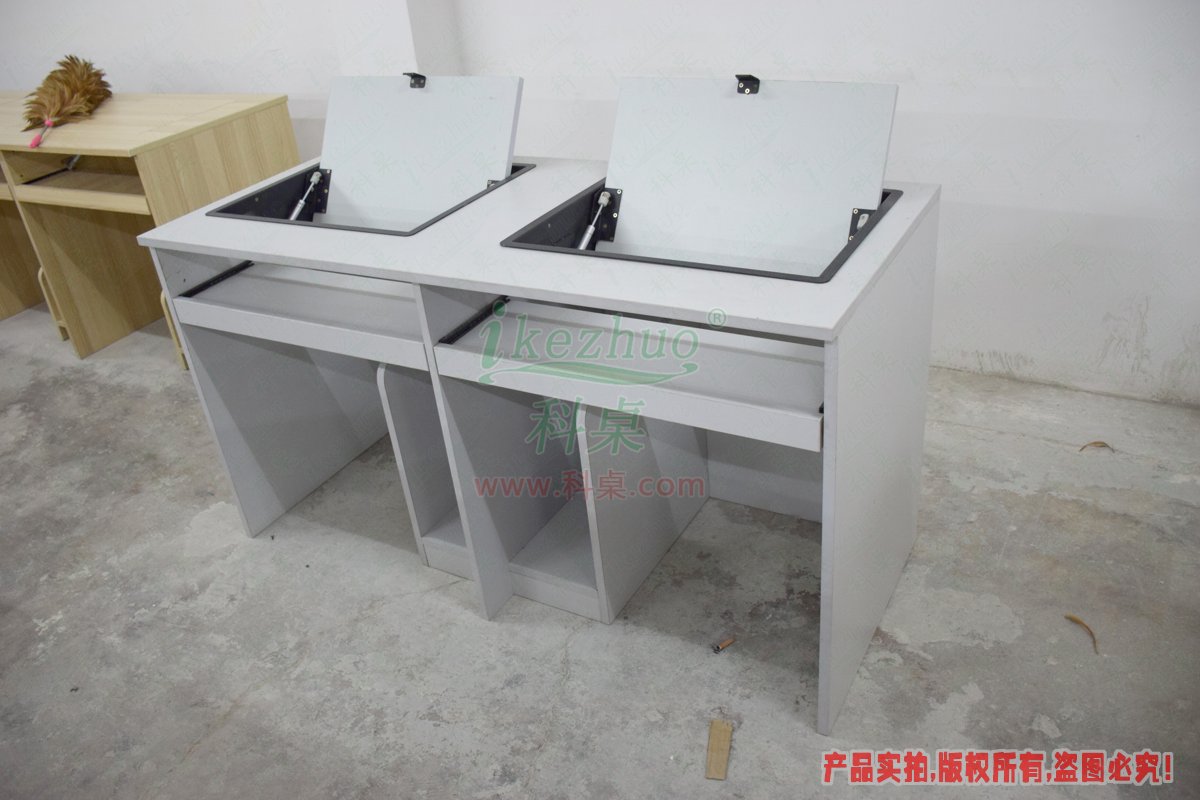 科桌翻轉(zhuǎn)電腦桌主要應用于各種大型會議室,學術(shù)報告廳,計算機教室,多媒體教室、多媒體會議室、多媒體電子教室、多媒體電教室、機房、培訓中心,展廳內(nèi)及多功能會議廳等。普通教室與計算機教室模式相互切換快速,不阻礙老師與學生之間目光交流。