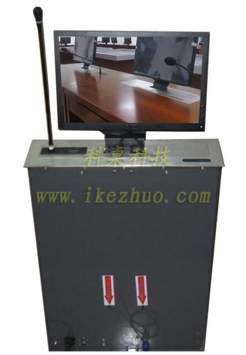 19寸科桌液晶屏升降器需要使用顯示屏時,隱藏在會議桌內(nèi)部的升降機把顯示屏從會議下面升到桌子表面;當不使用顯示屏時,升降機自動下降,顯示屏隱藏在會議桌內(nèi)部,防盜、防塵;保持桌子表面的平整和美觀。